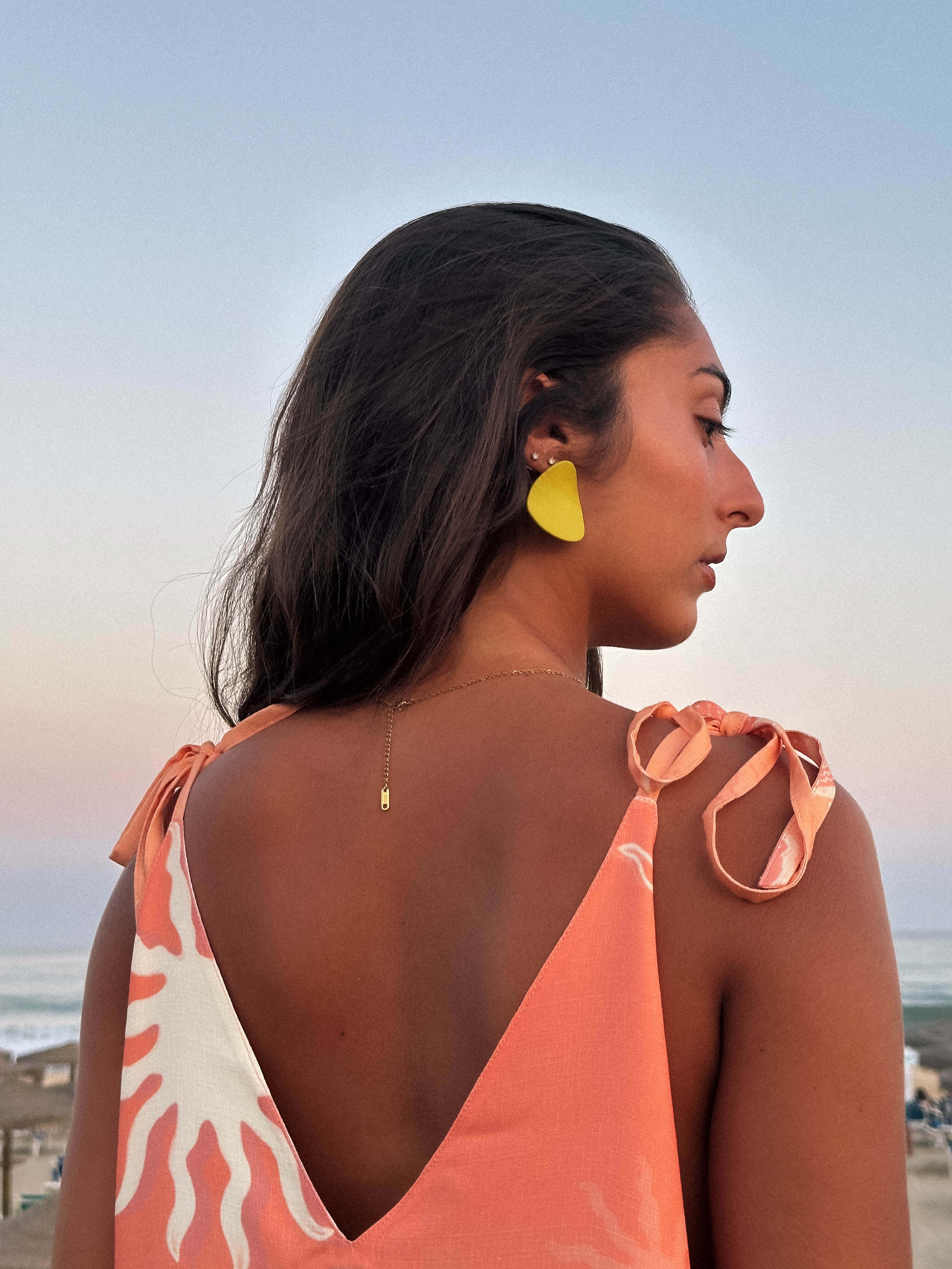The Surya dress is made in Lenzing™ Ecovero™ viscose, a certified fabric with a lower environmental footprint than conventional viscose. It uses less water, reduces emissions, and is sourced responsibly. On top of that, each dress is produced locally in Portugal in small batches or made to order, avoiding waste and overproduction. While fast fashion prioritizes quantity, this dress embodies slow fashion values — exclusivity, quality and respect for the planet.